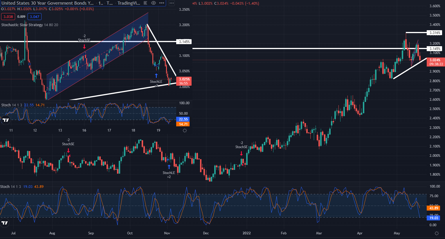 Turning attention from FCI and from 20s to bonds (which, they say, have more fun). Here’s DAILY 30yy chart with an HOURLY (inset) from TradingView.com