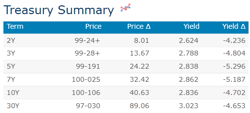 Treasuries rallied further overnight in a solid risk-off move that continues to benefit safe haven assets. Overnight volumes were elevated with cash trading at 113% of the 10-day moving-average. 10s were the most active issue (an infrequent occurrence) taking a 34% marketshare while 5s were second at 31%. 2s and 3s combined to take 19% at 13% and 6%, respectively. 7s managed 8%, 20s an impressive 3%, and 30s 5%. We’ve seen two-way flows in 10s and buying in 30s.