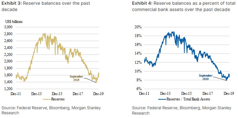 MS: September 2019? Not So Fast, My Friend | US Rates StrategyRepo market concerns have resurfaced, but fears of a '19-style funding squeeze are overblown given still-abundant reserves and foreign bank cash waiting to be deployed. With funding already priced for stress, we think staying long SERFFV5 offers compelling value amid downside risks to September tax receipts.