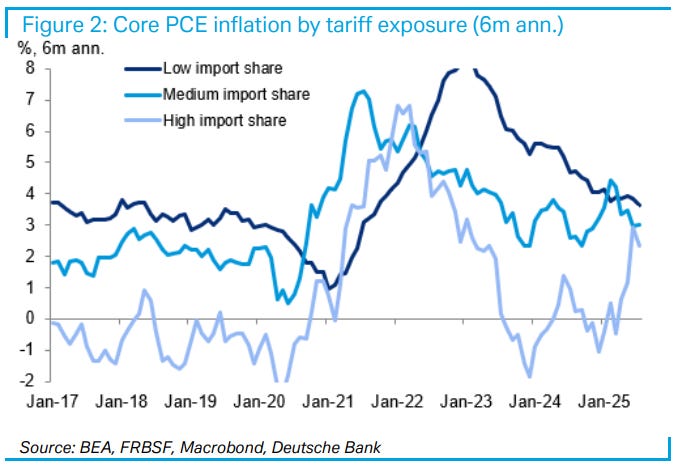 In this piece, we split up the PCE basket into those goods and services with low, medium and high import share to isolate the part of inflation that can be attributed to tariffs.