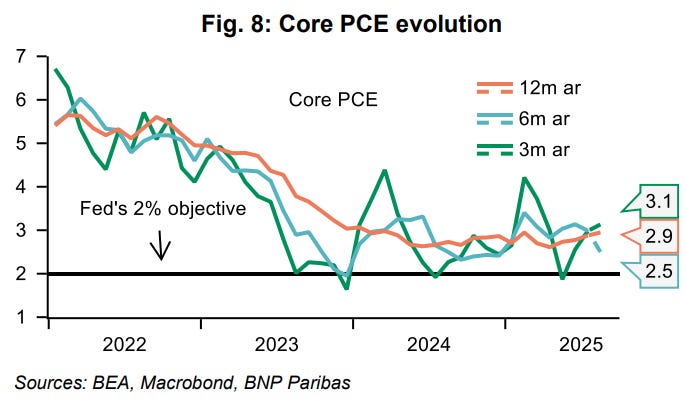 This week’s CPI print was firm at 0.35% m/m, but tariff passthrough effects were less pronounced. We now forecast core PCE for August at just 0.18% m/m.